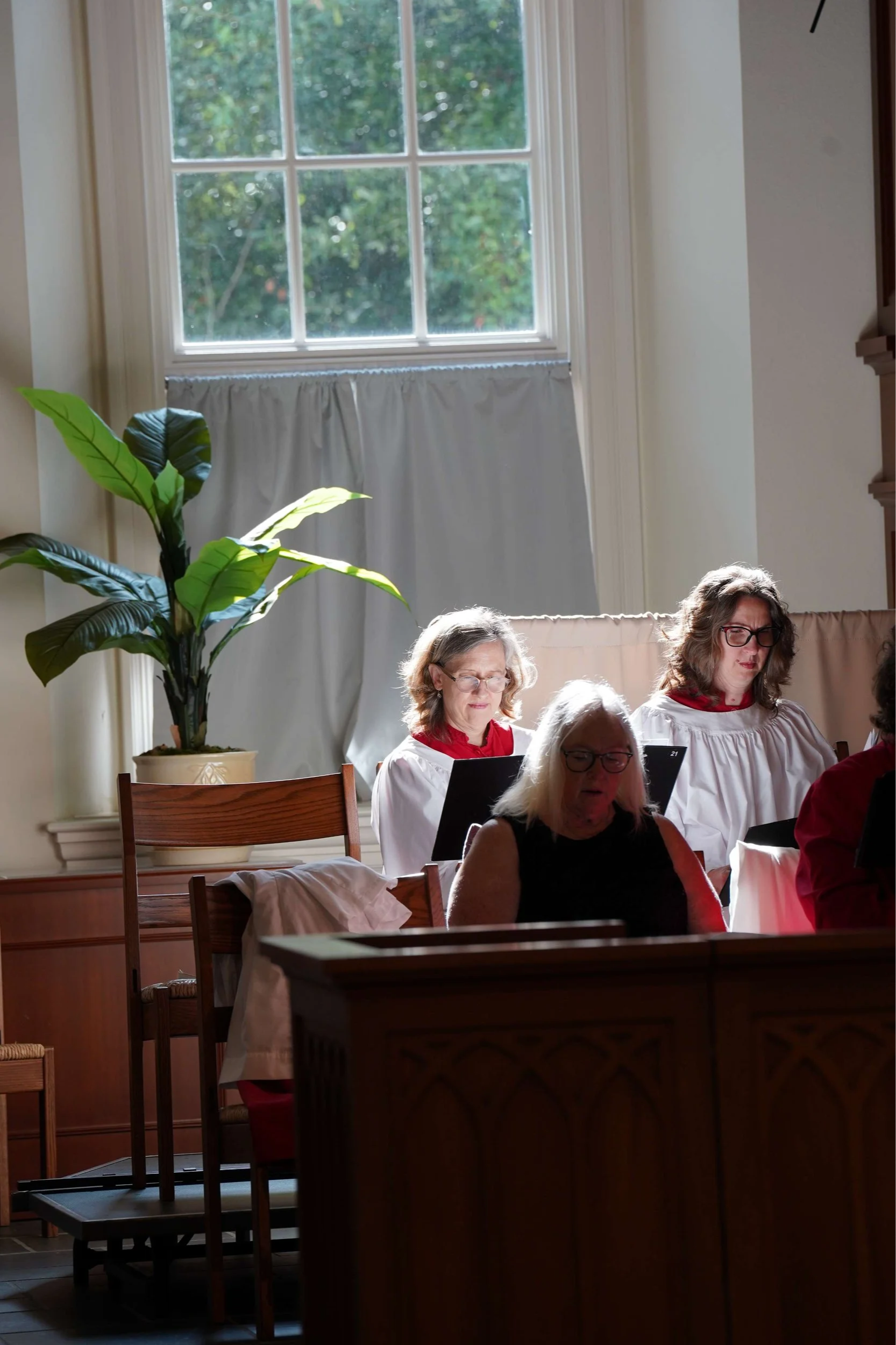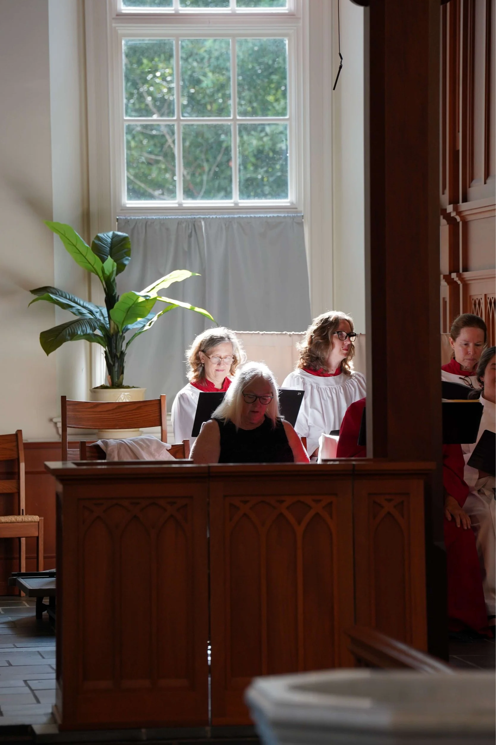 Professional singers who provide musical leadership and support for our parish choir. They serve as section leaders for the choir and occasionally sing as their own ensemble.