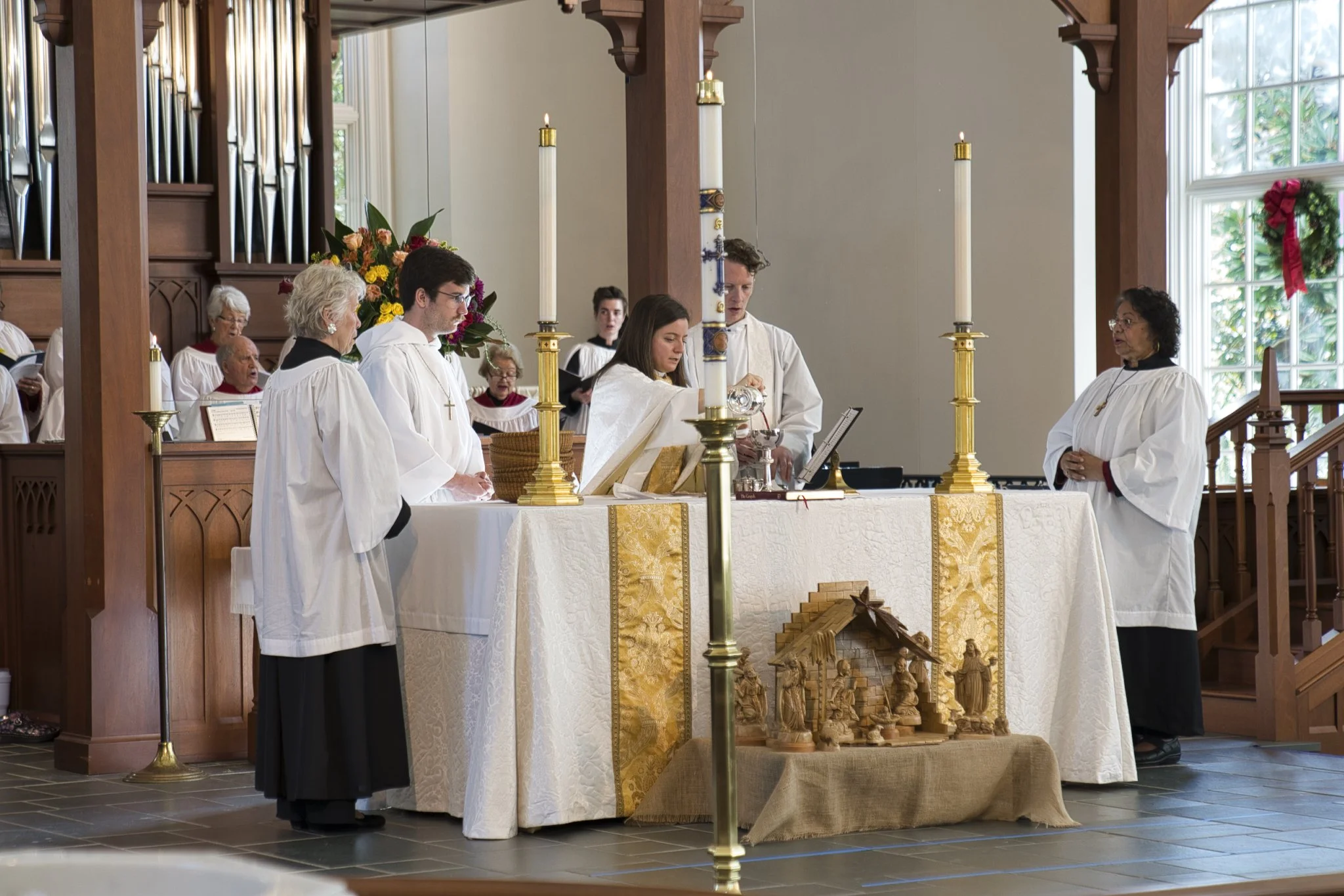 Come as you are! You'll see everything from casual wear to business attire. What matters is that you're here. Choir, clergy, and lay ministers wear vestments or robes.